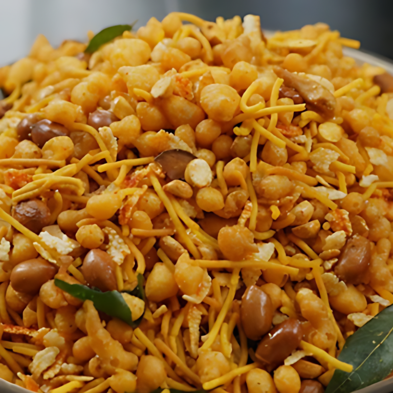 A spicy South Indian mixture packed with sev, boondi, peanuts, and curry leaves. Irresistibly crunchy.