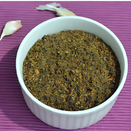 A delicious chutney powder blended with roasted peanuts, red chillies, and spices. Enhances any meal with its rich taste.